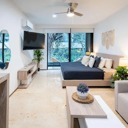 Il y a aussi une cuisine avec tous les ustensiles de cuisine nécessaires fournis. L'aéroport National de Playa del Carmen est à une distance de 5 minutes en voiture, et l'arrêt de bus Colectivo pick up est à côté de l'appartement.